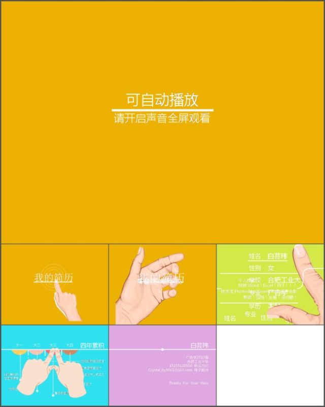 OVO图库提供动态个人简历PPT作品供会员免费下载,作品格式为pptx。更多精彩个人简历PPT模板素材,尽在OVO图库。