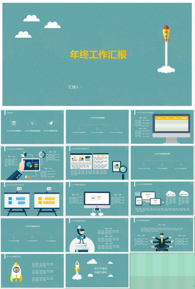 OVO图库提供小火箭直冲云霄扁平化卡通年终工作汇报ppt模板供会员免费下载,作品格式为pptx。更多精彩工作总结PPT素材,尽在OVO图库。
