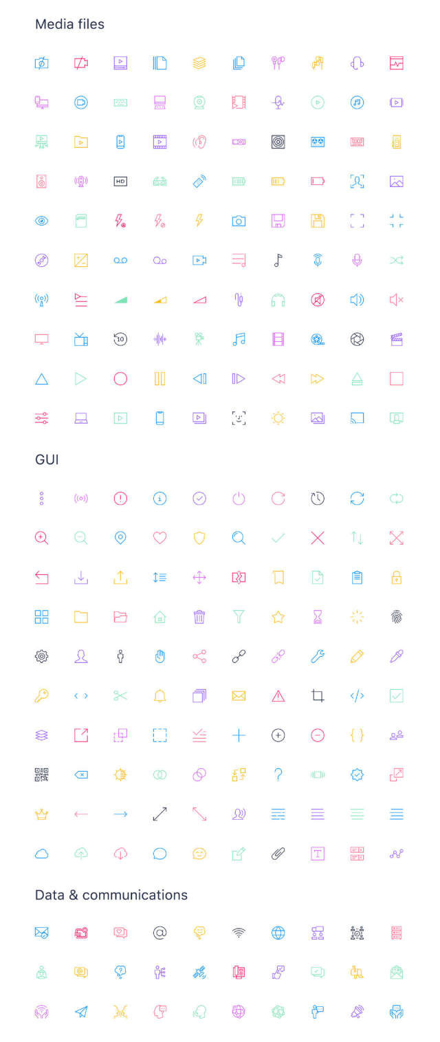矢量图标设置有300多个图标,有彩色和黑色版本。,Pixicons 300+图标