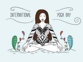 瑜伽与装饰品和五颜六色的叶子的妇女姿势