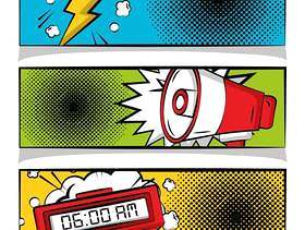 漫画波普艺术横幅崩溃扩音器和闹钟半色调