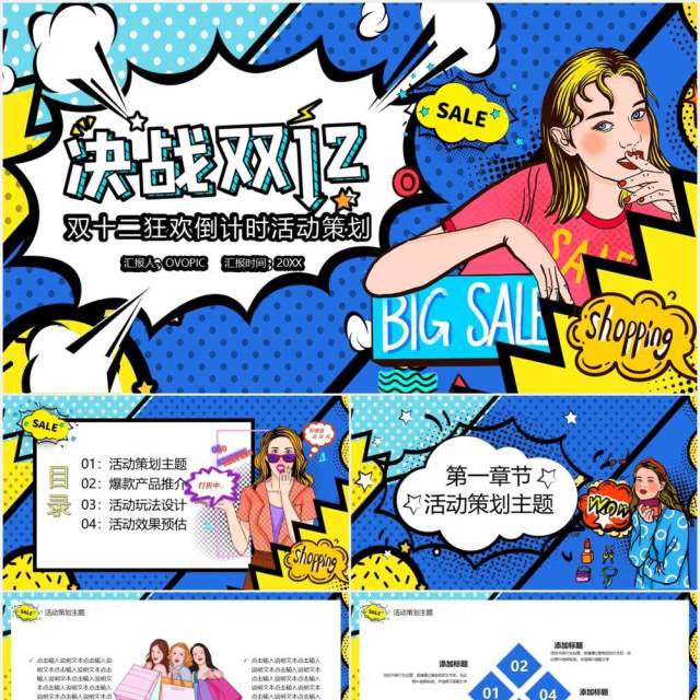 OVO图库提供波普风决战双十二活动策划PPT模板供会员免费下载,作品格式为ppt。更多精彩节日庆典PPT素材,尽在OVO图库。
