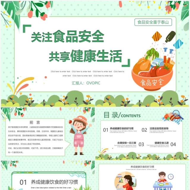 OVO图库提供绿色卡通关注食品安全PPT模板供会员免费下载,作品格式为ppt。更多精彩其它PPT模板素材,尽在OVO图库。