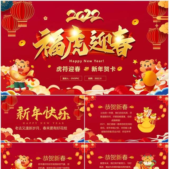 OVO图库提供红色中国风福虎迎春新年贺卡PPT模板供会员免费下载,作品格式为ppt。更多精彩节日庆典PPT素材,尽在OVO图库。