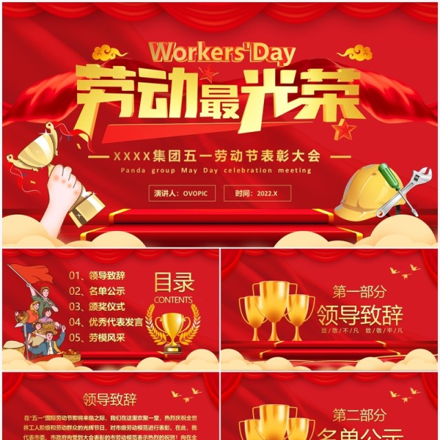 OVO图库提供红色大气五一劳动节表彰大会PPT模板供会员免费下载,作品格式为ppt。更多精彩其它PPT模板素材,尽在OVO图库。