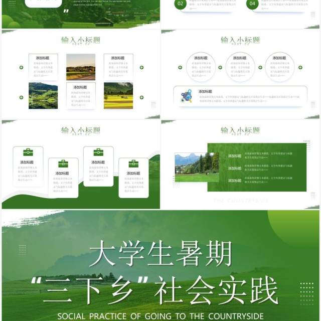 绿色简约风大学生暑期三下乡社会实践PPT模板