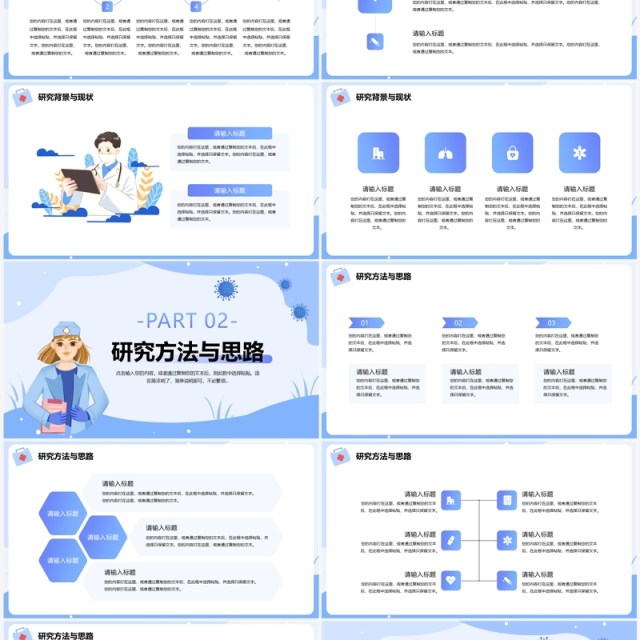 OVO图库提供蓝色插画风医学类毕业论文答辩PPT通用模板供会员免费下载,作品格式为ppt。更多精彩论文答辩PPT素材,尽在OVO图库。
