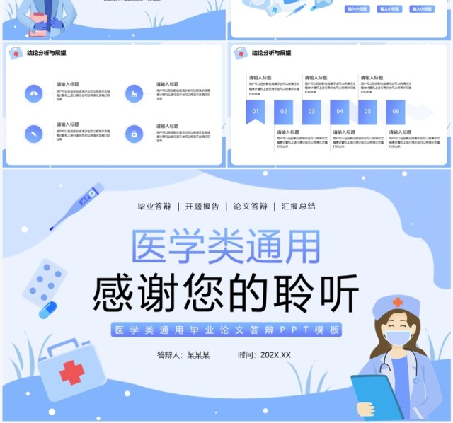 蓝色插画风医学类毕业论文答辩PPT通用模板