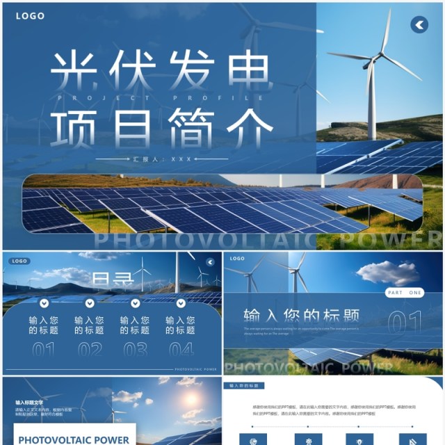 OVO图库提供蓝色简约风光伏发电项目简介PPT模板供会员免费下载,作品格式为ppt。更多精彩其它PPT模板素材,尽在OVO图库。