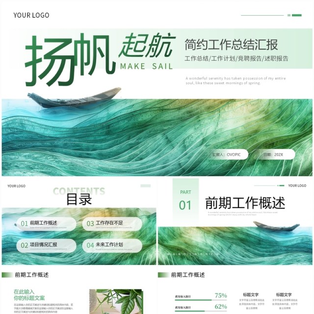 OVO图库提供绿色清新简约风工作总结汇报PPT模板供会员免费下载,作品格式为ppt。更多精彩工作总结PPT素材,尽在OVO图库。